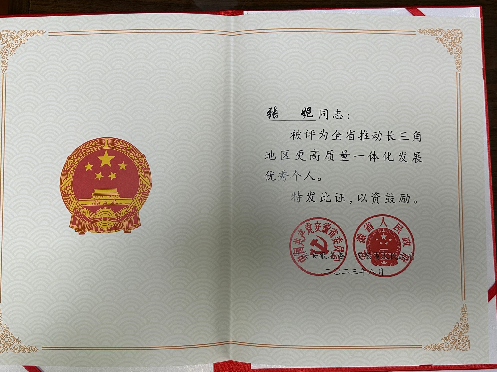 法学院教师被评为安徽省推进长三角地区更高质量一体化发展优秀个人