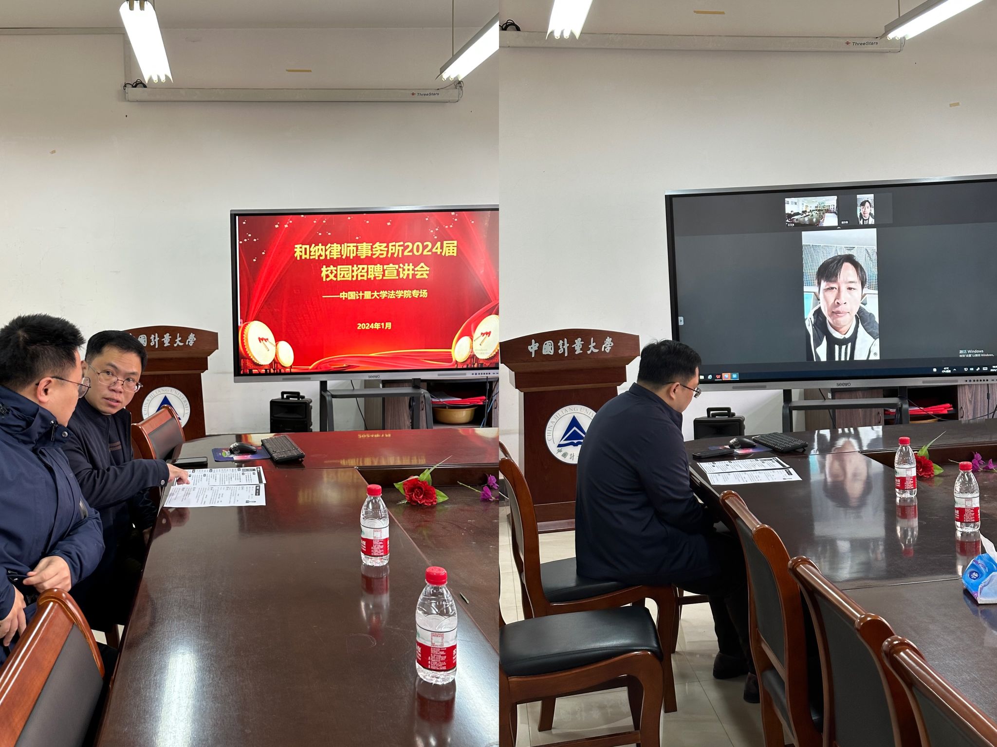 为帮助学生更好地了解就业形势,促进学生高质量就业,1月9日上午,浙江和纳律师事务所应邀来法学院(知识产权学院)举办专场招聘宣讲会。宣讲会在格南101会议室举行,本次招聘岗位主要面向知识产权专业2024届本硕毕业生。