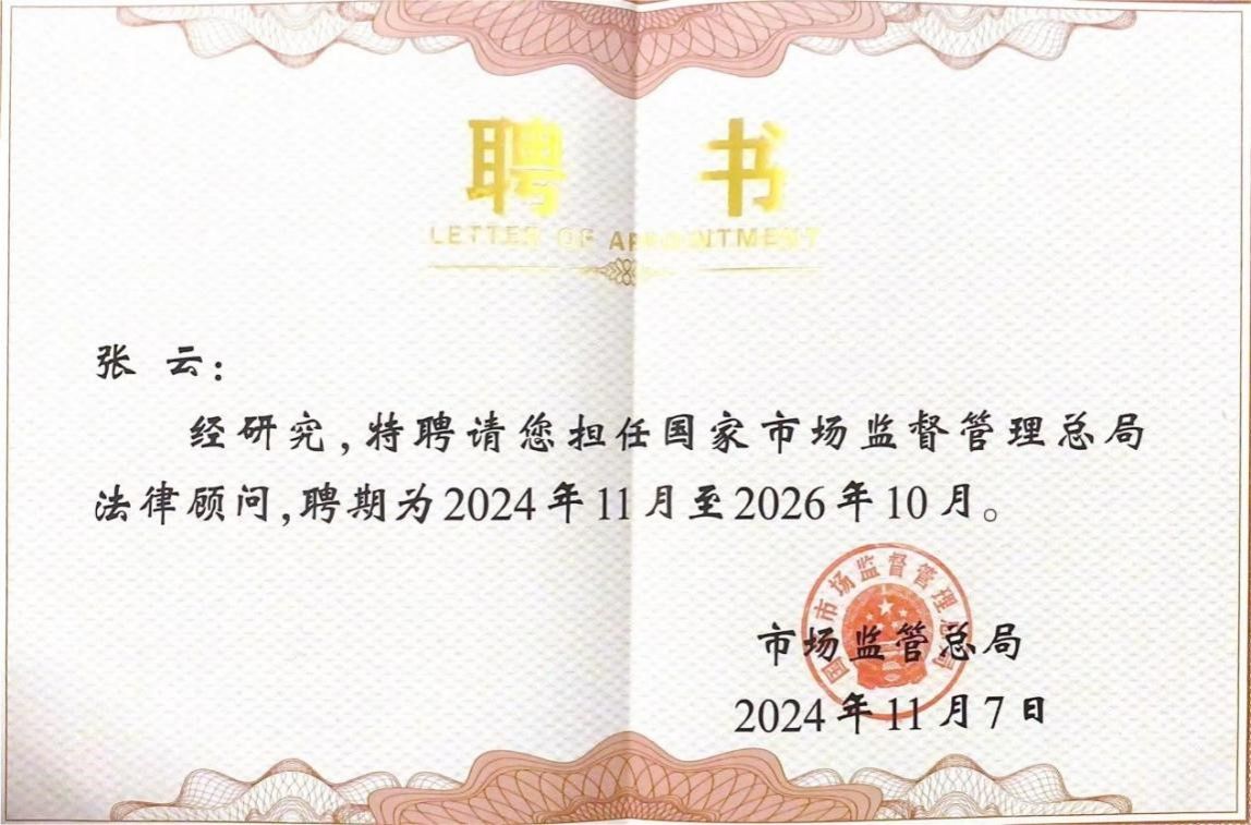 张云教授受聘市场监管总局法律顾问,表明我校法学院在市场监管法领域的理论和实践研究得到了市场监管总局的认可,已成为市场监管法治领域的一支重要力量。