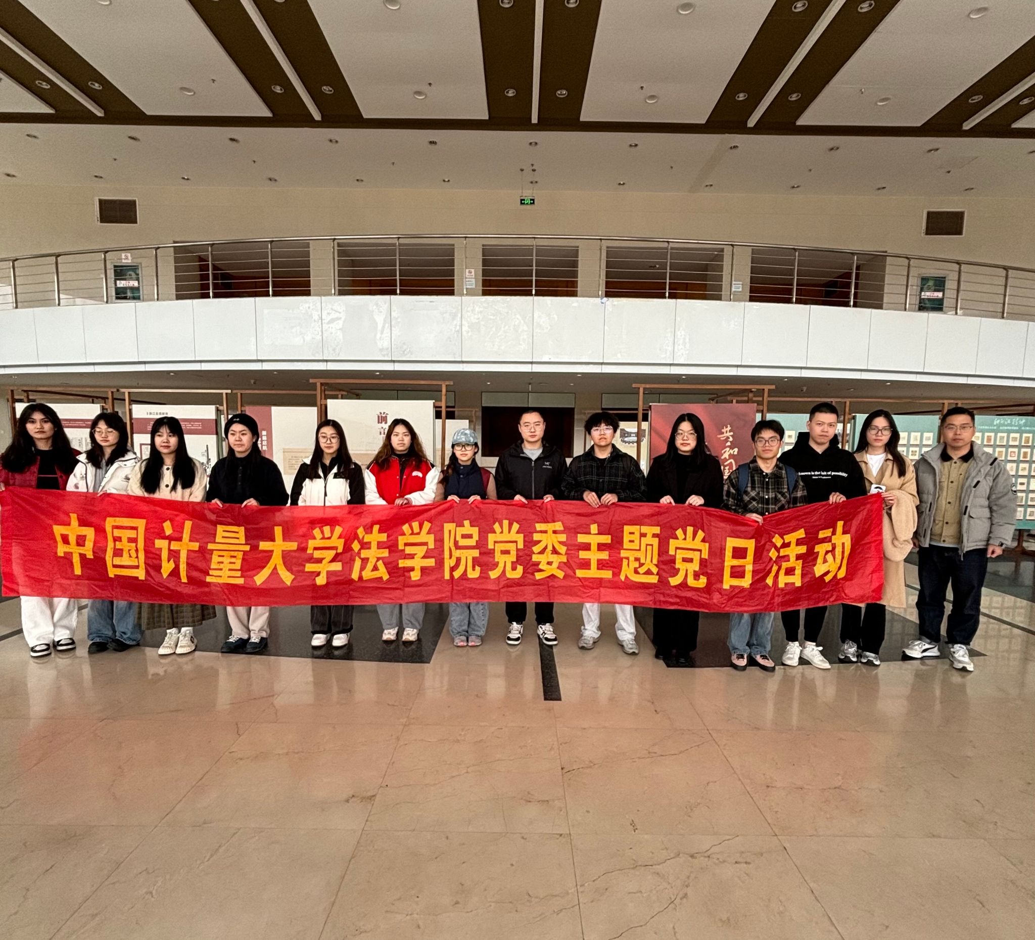 为庆祝新中国成立75周年,守护红色根脉、传承浙江精神,12月3日,法学院党委组织新发展党员参观了由浙江省文化广电和旅游厅、浙江省文物局主办,浙江省博物馆、中国计量大学承办的“共和国足迹·浙江印记——庆祝新中国成立75周年全省革命文物巡展”。