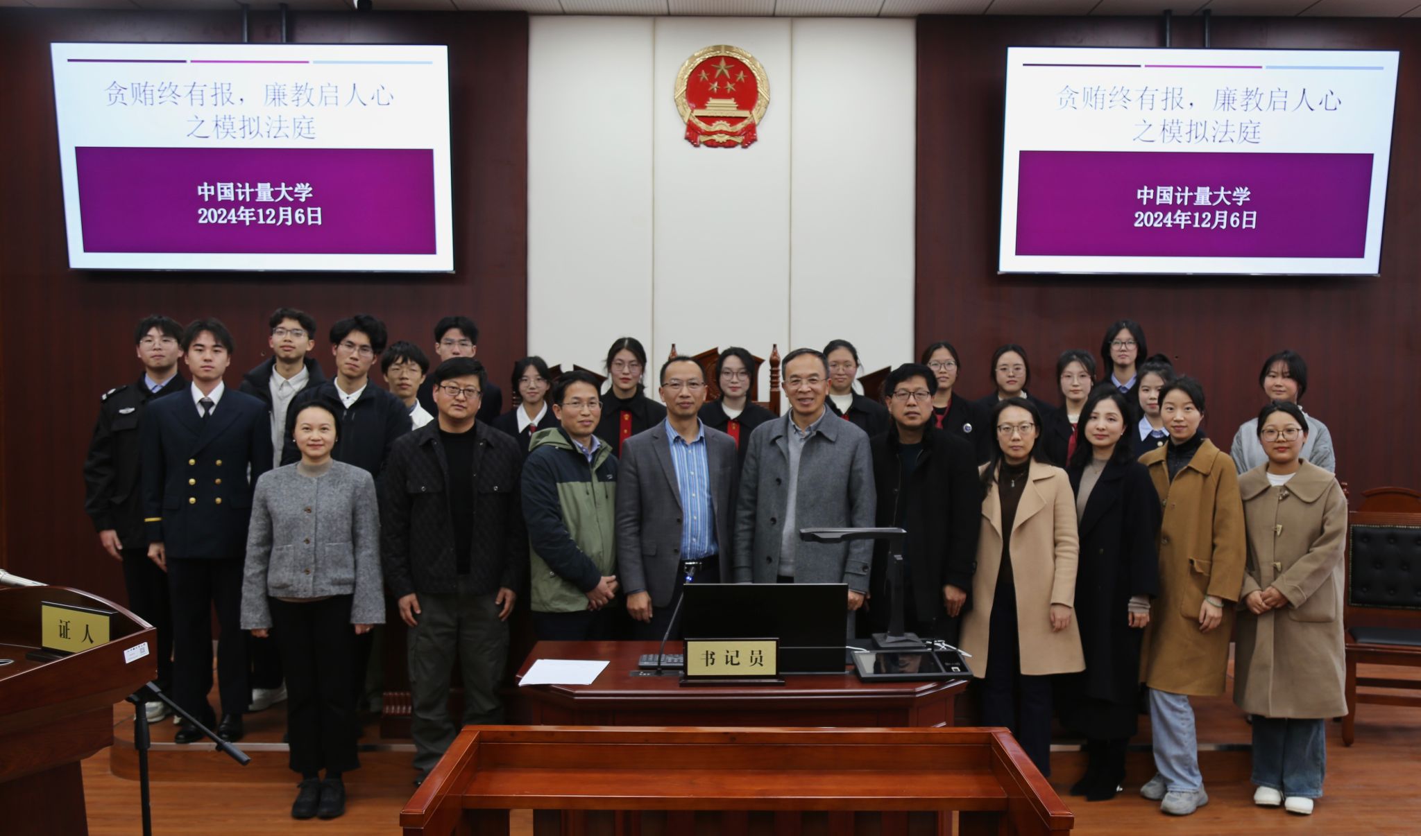 马春波在致辞中指出,党的二十大报告明确提出加强新时代廉洁文化建设的要求,校院两级纪委要坚持发扬、传承和融合优秀传统计量文化和廉洁文化,扎实推进校园廉洁文化建设不断走实走深。他对进一步做好校园廉洁文化建设提出三点工作要求,一是要聚焦“关键点”,深耕“量秀清风”品牌,实现计量特色廉洁教育内涵式发展;二是要串联“联动线”,创新教育形式,通过多元联动扩大覆盖面,调动师生积极性;三是要拓展“长效面”,加强廉洁教育效果,推动纪律教育常态化,筑牢思想防线。他强调模拟法庭展演不仅是一场实景式、沉浸式的庭审体验,更是一场生动鲜活的“纪法警示教育实践课堂”,希望广大师生通过观看展演活动,筑牢拒腐防变的思想防线,共同营造风清气正的校园政治生态和办学环境。