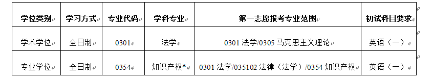 知识产权硕士专业学位接收退役大学生士兵专项计划调剂生2名。