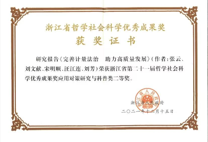 基地成立以来,研究团队开展了一系列卓有成效的计量法治研究、智库服务及相关培训工作。围绕《计量法(征求意见稿)》向全社会征集到的200余条意见,研究团队对《计量法》修改的若干重大问题进行深入系统研究,完成40余份研究报告,对《计量法》领域的重大现实问题,如许可制度改革、计量结果监管、民生计量制度改革、应对量子化变革、计量法律责任的完善等作出了独创性的具有学理价值的理论分析,提出了很多具有实践价值的新理念、新观点。研究成果2次获得市场监管总局领导的肯定性批示。研究团队关于计量法治完善的相关研究也得到了法学理论界的认可,团队负责人张云教授主持的《我国<计量法>修订中的若干重大问题研究》2019年获得国家社科基金项目立项,研究成果《完善计量法治 助力高质量发展》2022年获浙江省哲学社会科学优秀成果奖二等奖。