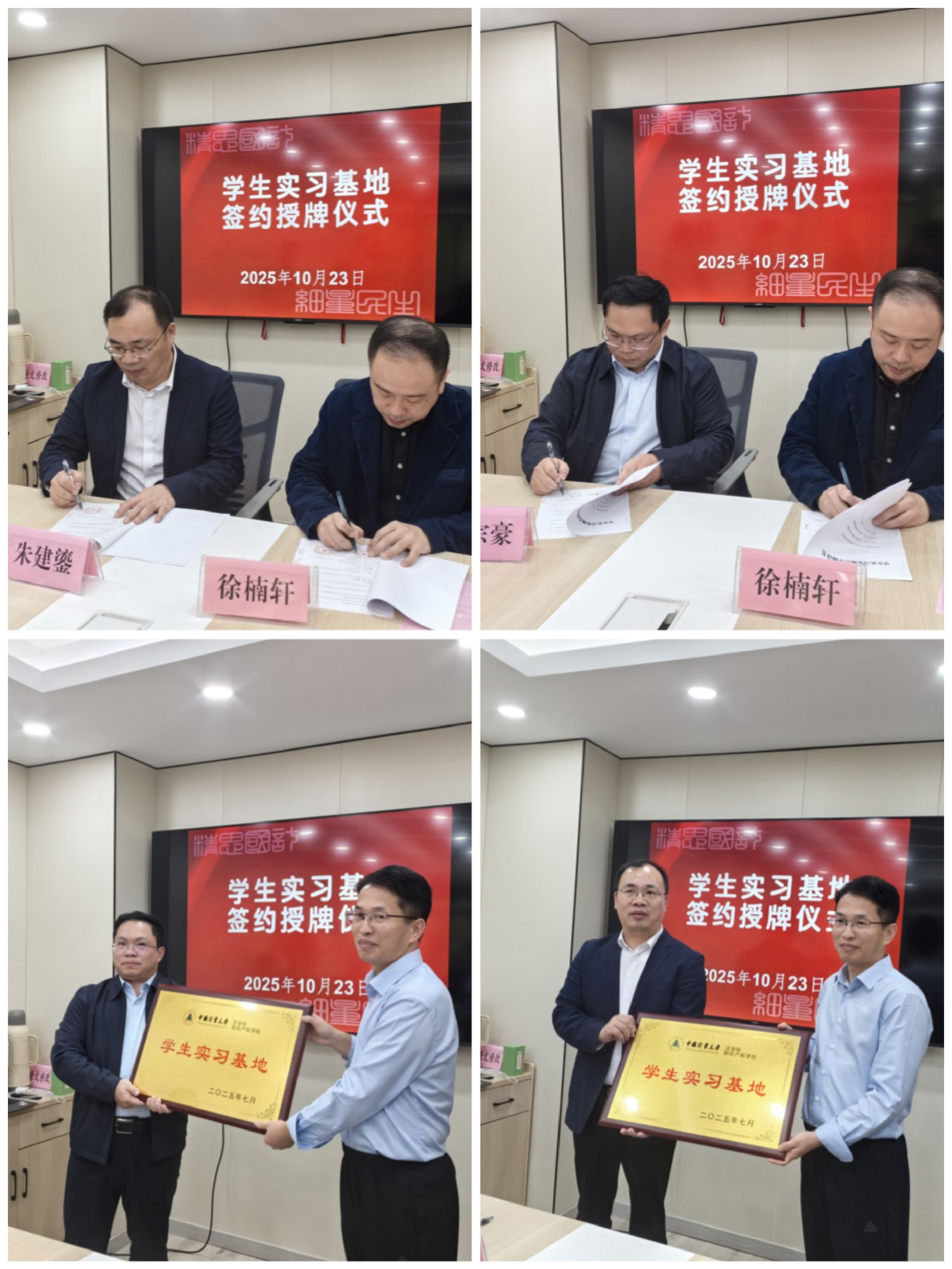 会上,徐楠轩代表学院与两家律所分别签署了学生实习基地合作协议,张徐兴为两家律所授牌。仪式结束后,与会人员围绕法治人才培养、实践教学、产学研融合等方面进行了深入交流。