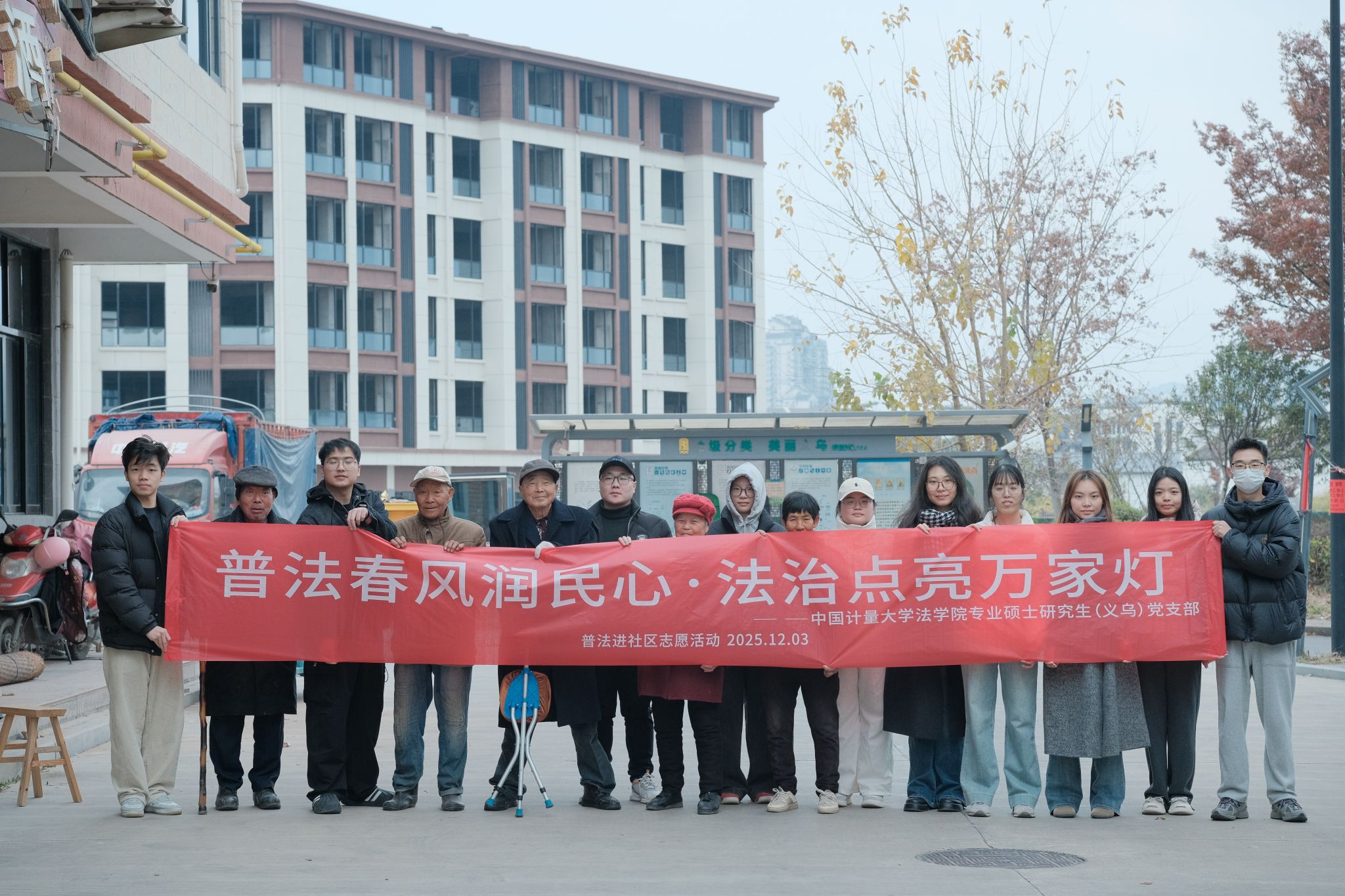 为深入学习宣传贯彻习近平法治思想,推动法治精神深入基层、服务群众,12月3日下午,法学院党委专业硕士研究生(义乌)党支部党员及入党积极分子一行前往义乌市佛堂镇王江小区,举行“研行法路·法治进万家”志愿普法进社区活动。