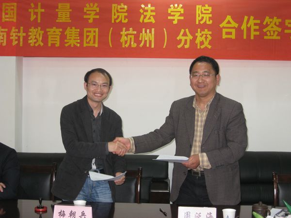 指南针教育集团(杭州)分校是目前在杭司法考试培训的领军者,经多年跨越式发展,已成为拥有培训部、图书资料部、司法考试命题研究中心、教学研究中心、网络多媒体部、及法律软件开发部六大职能部门的综合性教育培训机构。签字仪式上,周泛海代表学院对梅朝兵一行的到来表示欢迎,并对签字仪式的举行表示祝贺,他表示,通过司法考试是从事律师、法官等职业必备的基础性条件,是法学院学生打开发展空间、提升发展层次的需要。法学院学生司考通过率从08年到10年逐年稳步提升,离不开学生们自身的执着和努力,但参加有效的司考培训也为大家提供了重要的指导和保证。他希望双方以此签署协议为契机,严格、规范的按照协议内容开展各自的工作,切实的为广大同学搭建平台,提供服务。梅朝兵表示,较高的司考通过率、良好的口碑和优质的服务是指南针的生命线,指南针(杭州)分校非常重视与法学院的合作,将积极主动帮助同学们了解指南针教育培训的风格和方式,提供充足的司考资讯和备考材料,保证教育培训的质量,实现双方合作的双赢。周溯还就协议在法学院设立精英奖学金,资助法律文化节活动、开展就业实习合作等方面作了介绍。