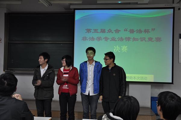 12月3日晚,法学院第八届法律文化节系列精品活动之"普法杯"法律知识竞赛决赛于翔宇101举行,经管、生科、艺传、信息四支代表队在决赛中进行了激烈的角逐,最后由经管学院代表队摘得桂冠。法学院党总支书记周泛海、法学院副院长陶丽琴出席本次活动,四支代表队所在学院辅导员以及啦啦队到场观看助威。