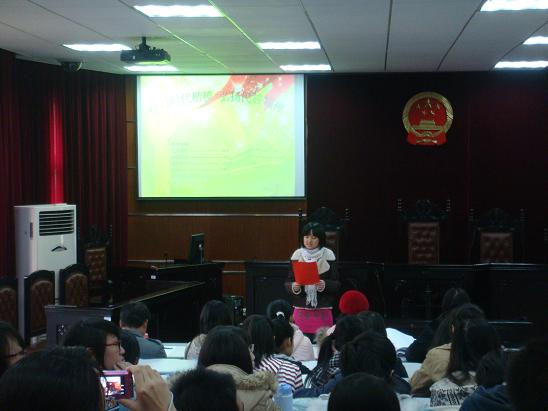 12月9日中午,法学院在模拟法庭举行了一场题为"学习时代楷模,弘扬民族精神"的班级交流会暨班级手抄报评比活动。学院学生工作主管李佳、团总支书记和学生干部一起担任评委。07、08、09级共11个班级参加活动。