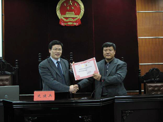 11月12日晚,浙江浙元律师事务所主任、杭州仲裁委员会仲裁员史建兵律师受聘我校兼职教授仪式在法学院模拟法庭隆重举行。法学院院长杨凯教授主持了聘任仪式并代表学校向专家颁发了聘书,法学院100多名师生参加了聘任仪式。