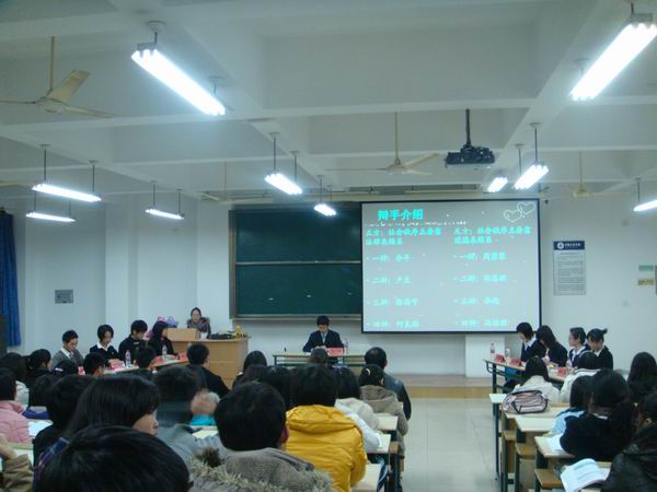 经过前几轮的比拼后由正方(08产权3班)与反方(08法学1班)就社会秩序是靠法律还是道德维持展开了激烈辩论,最终由反方夺得比赛冠军。赛后又进行了一场明星邀请赛,正方(计测学院)与反方(法学院)就现代社会更需要家庭主妇还是家庭主男展开了一场精彩的辩论。论辩中,双方辩手充分发挥聪明才智,高潮迭起。最后,毕晓光为此次辩论赛作了精彩点评。他指出了此次活动的选题有特色,与人生修养、社会发展相通,辩论赛是锻炼和提升自己逻辑思维、口才能力很好的方式,希望各位同学能够把握机会展现自我风采,提升自我核心竞争力。
