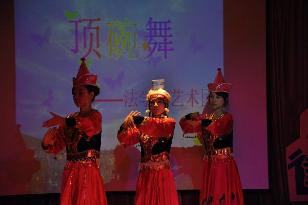 杨凯院长首先致词,他代表学院热烈祝贺法律文化节的开幕,他总结了举办法律文化节的意义,并就办好法律文化节提出希望和要求。紧接着富有蒙古族特色的顶碗舞揭开了开幕式文艺晚会的序幕,蒙古姑娘合着奔腾豪迈的蒙古族音乐翩翩起舞,瞬间点燃了现场的激情。接下来,歌曲、话剧、现场书画、明星辩论赛等节目一一展现在众人面前,精彩纷呈,赢得阵阵掌声。最后李晓君老师一曲对法学院给予厚望的吉他弹唱更是将晚会推向高潮。开幕式期间,还举行了法学院志愿者普法基地授牌仪式,杨凯向专程光临的刀茅巷小学校长授牌。