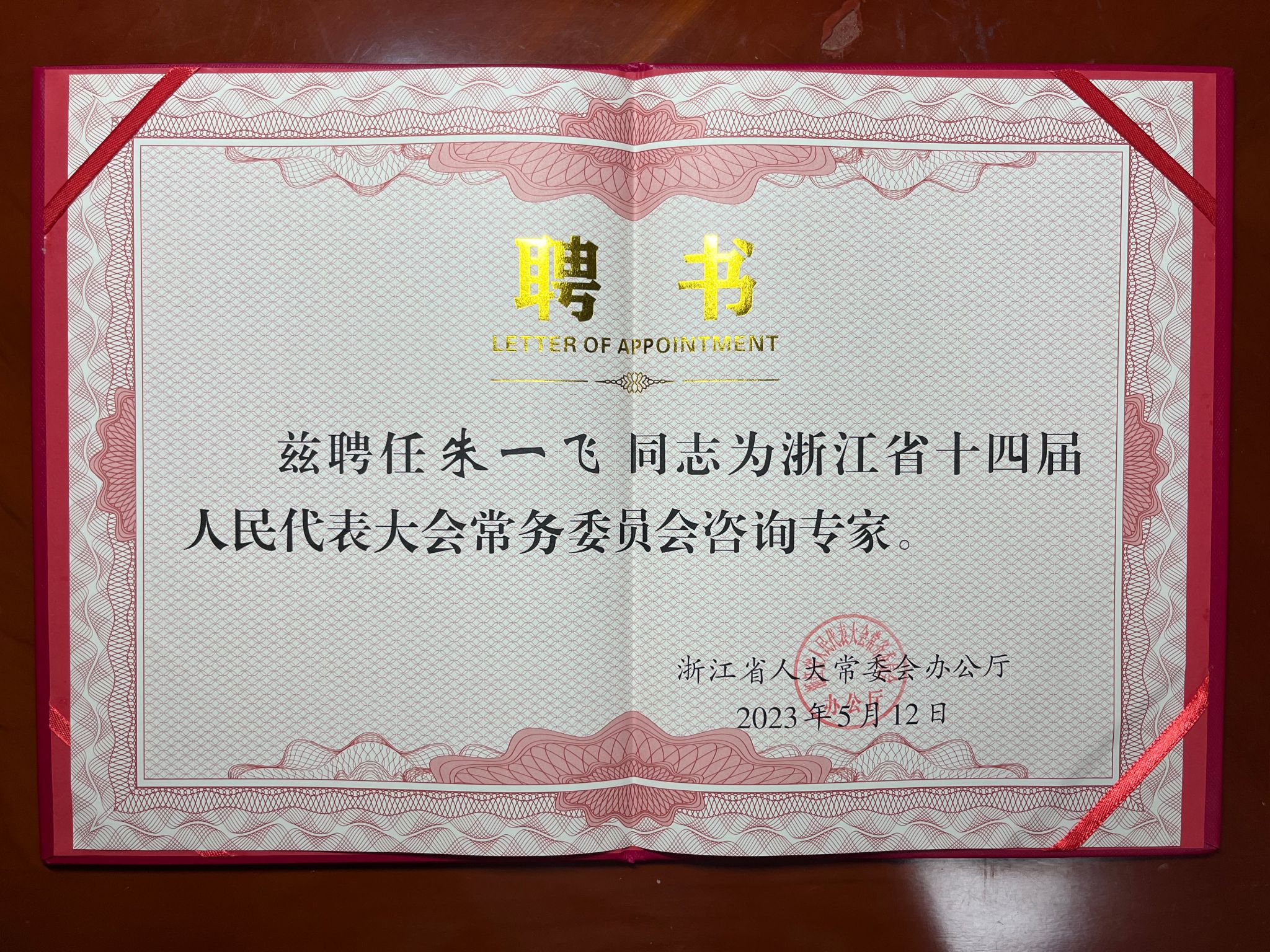 我校法学院教授受聘担任浙江省人大常委会咨询专家
