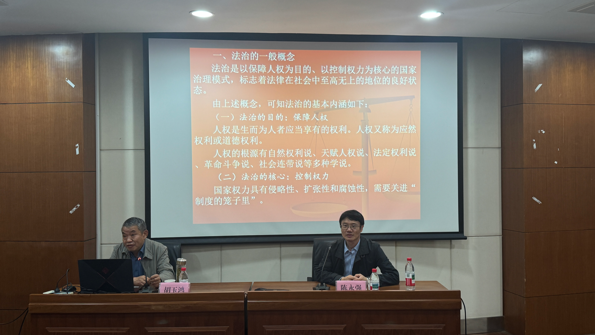 11月6日,华东政法大学法律学院教授胡玉鸿应邀到法学院(知识产权学院),为师生作题为“法治国家及其制度构造”的学术讲座。讲座由陈永强教授主持,百余名师生现场聆听了讲座。