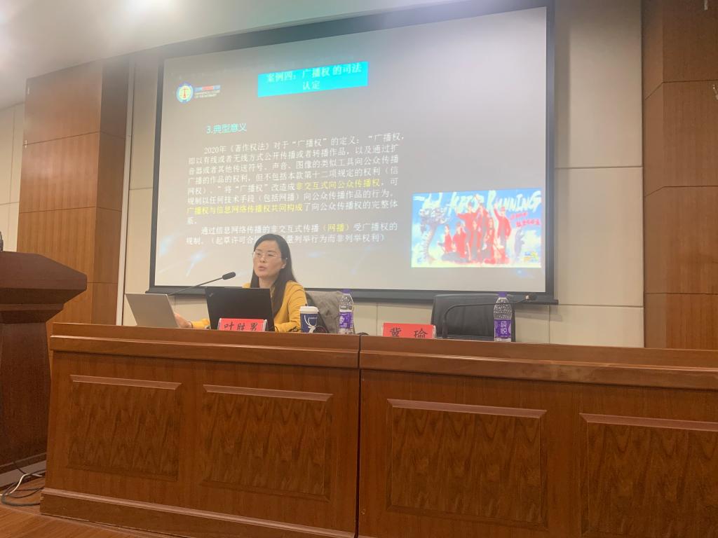 讲座中,叶胜男副庭长首先介绍了杭州互联网法院知识产权审判基本情况。杭州互联网法院持续推进知识产权审判领域改革创新,充分发挥知识产权司法保护的主导作用,为实施创新驱动发展战略、营造有利于数字经济发展的优良营商环境,提供了有力司法服务和保障。接着,叶胜男副庭长围绕十大典型涉网著作权案例进行了深入解读,包括:全国首例游戏模拟器《率土之滨》VS《率土模拟器》侵权案、“哪吒”“敖丙”电影角色侵权案、“暴风影音”体育赛事点播案、综艺电视节目《奔跑吧(第二季)》广播权侵权案、“咪咕阅读”网络搜索服务商信息网络传播权侵权案、网络游戏捏脸系统案、片花短视频侵权案、《阴阳师》美术形象侵权案、电视猫盗链案及微信小程序服务提供者涉侵权案。讲解生动有趣,激起了全场师生的热烈反响。