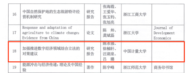 浙江省哲学社会科学优秀成果奖是浙江省哲学社会科学成果最高奖,由浙江省人民政府颁发证书、给予奖励。“十四五”期间,法学院(知识产权学院)已连续两届获得2项省哲学社会科学优秀成果奖二等奖,为推动浙江哲学社会科学事业繁荣发展贡献了具有辨识度的标志性成果,为持续推动“八八战略”走深走实,“勇当先行者、谱写新篇章”提供了强有力的理论支撑与智力支持。