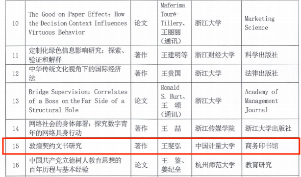 12月20日,浙江省社会科学界联合会、浙江省哲学社会科学工作办公室正式公布了第二十二届浙江省哲学社会科学优秀成果奖获奖名单。我校法学院(知识产权学院)陈永强教授的《加强推进数字经济领域综合立法的对策建议》研究报告获应用对策研究与社科普及优秀成果二等奖,王斐弘教授的《敦煌契约文书研究》著作获基础理论研究优秀成果二等奖。