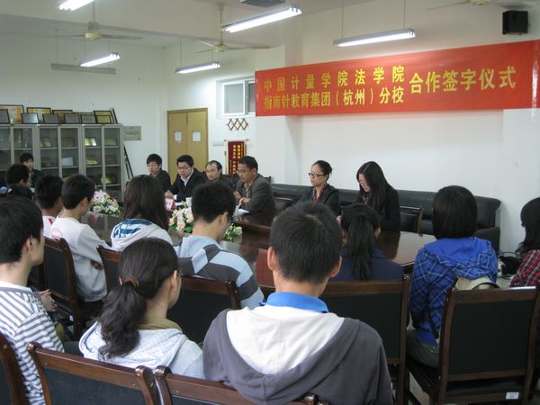 | 4月20日下午,我院与指南针教育集团(杭州)分校司考合作签字仪式在格南101会议室隆重举行。我院党总支书记周泛海,指南针华东区市场总监、杭州分校校长梅朝兵,指南针(杭州)分校教务总监周溯等领导出席了合作签字仪式,法学院学工办、分团委学生会及各年级学生干部共40余人参加了签字仪式。 指南针教育集团(杭州)分校是目前在杭司法考试培训的领军者,经多年跨越式发展,已成为拥有培训部、图书资料部、司法考试命题研究中心、教学研究中心、网络多媒体部、及法律软件开发部六大职能部门的综合性教育培训机构。签字仪式上,周泛海代表学院对梅朝兵一行的到来表示欢迎,并对签字仪式的举行表示祝贺,他表示,通过司法考试是从事律师、法官等职业必备的基础性条件,是法学院学生打开发展空间、提升发展层次的需要。法学院学生司考通过率从08年到10年逐年稳步提升,离不开学生们自身的执着和努力,但参加有效的司考培训也为大家提供了重要的指导和保证。他希望双方以此签署协议为契机,严格、规范的按照协议内容开展各自的工作,切实的为广大同学搭建平台,提供服务。梅朝兵表示,较高的司考通过率、良好的口碑和优质的服务是指南针的生命线,指南针(杭州)分校非常重视与法学院的合作,将积极主动帮助同学们了解指南针教育培训的风格和方式,提供充足的司考资讯和备考材料,保证教育培训的质量,实现双方合作的双赢。周溯还就协议在法学院设立精英奖学金,资助法律文化节活动、开展就业实习合作等方面作了介绍。 最后,双方在友好的气氛中签订了合作协议。