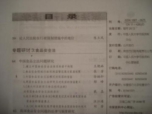 2006年秋,中国人民大学报刊复印资料《宪法、行政法学》第九期设专栏全文转载了我校法学院经济法学科关于中国食品安全立法研究的七篇文章,这是法学院以王艳林教授为首的食品安全法研究团队继承担国家质检总局课题之后所取得的又一次学术成果。另据悉,法学院食品安全法研究团队已和竞争法学研究团队一起,整合成立了“中国竞争政策—竞争法与食品安全法研究所”,并申报了校级研究所,为学科建设发展搭建更广阔的平台。