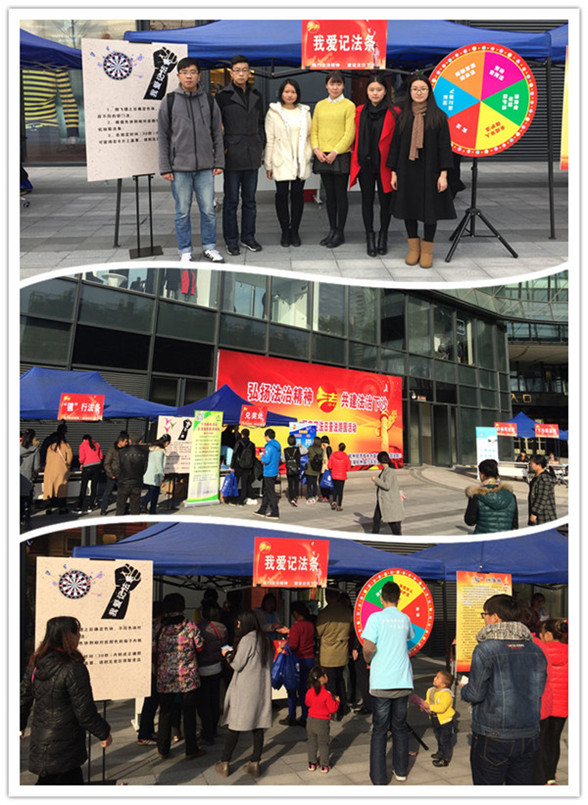 为迎接第二个"国家宪法日",12月4日14:00至16:00,在龙湖天街广场举办"弘扬法治精神,共建法治下沙"12.4国家宪法日普法游园活动,此次活动由杭州经济技术开发区管委会司法局主办,我校法学院党员之家学生干部代表下沙法律援助服务中心计量分中心,组织开展此次活动。
