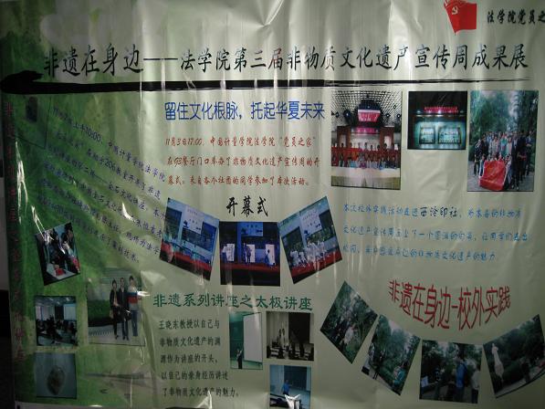 | 为了普及非物质文化遗产知识,弘扬中华民族传统文化,加强大学生保护非物质文化遗产的意识,法学院"党员之家"于11月3日-8日成功举办了第三届非物质文化遗产宣传周活动,活动内容丰富,形式多样,受到了院内外同学的欢迎。 开幕活动:非遗作品展示及外场互动 11月3日,法学院"党员之家"在G3餐厅门口开展了第三届非物质文化遗产宣传周开幕活动,即非遗作品展示及外场互动。来自学校古筝协会、西子书画社等多个社团及兄弟学院的同学们参加了本次活动。 随着夜幕的降临,聚光灯的闪起,法学院"党员之家"的非遗开幕活动正式开始。精湛的古筝演奏、刚柔结合的太极表演、优雅的越剧唱腔、精彩的书画表演首先为现场同学呈上一场精美的视觉、听觉享受。随后,现场的非遗知识问答将活动推向了高潮,同学们开动脑筋,积极参与。活动同时展出了前期征集到了近十幅同学书画作品,并进行现场投票评选。 非遗系列讲座之一:太极文化及其保护现状 11月3日晚,体军部王晓东副教授应邀作了主题为"太极文化及其保护现状"的讲座,吸引了我校一大批太极爱好者前来参加。 讲座中,王晓东通过自身经历,讲述了存在于我们身边的诸多非物质文化遗产,并指出文化是需要通过心的交流才能领悟它的精髓。他通过现场精彩的太极表演,带领同学们在一招一式的表演中感受太极的魅力,领略传统文化的博大精深。此外,他还现场传授了练习太极的技巧,深化了同学们对太极养生之道的了解。 校外实践活动:"非遗在身边" 11月6日,法学院"党员之家"在美丽的西子湖畔开展了"非遗在身边"校外实践活动。实践活动包括参观西泠印社、"印刻文化与非物质文化遗产"采访调查、西湖自导自游等三个环节内容。 西泠印社作为反映中国印刻文化的纪念馆,让同学们了解到了中国印刻文化的发展历史,缤纷的印刻艺术品激发了大家对印刻艺术的兴趣,各式各样的印章带给大家视觉、文化上的魅力感受。随后,"党员之家"成员就"印刻文化与非物质文化遗产"主题进行了随机采访调查,现场宣传、展示了中国非物质文化遗产的相关知识,纠正了游客们对非遗存在的一些误解和不正确认识。最后,同学们开展了西湖自导自游活动,沿途拜谒和参观了秋瑾墓、苏小小墓、白居易纪念馆、俞楼等场所,在历史中寻觅非物质文化遗产踪迹。 非遗系列讲座之二:金石文化发展历史 11月7日上午,非遗系列讲座之金石文化发展历史在翔宇206教室举行,国家二级美术师、西泠印社社员朱恒吉和西泠印社博物馆陈叶华主任为法学院09、10级同学作了精彩的讲座。 讲座中,陈叶华主任首先介绍了金石文化在中国古代文化中的重要地位,让同学们对金石文化有了初步的了解。紧接着,朱恒吉老师通过幻灯片向大家展示了中国印章的发展史、篆刻技法、印章制作的过程等知识。在朱老师的引领下,同学们进入了中国古印世界,了解了寿山石、青田石、昌化石、巴林石等四大名石,知道了徽派、浙派等篆刻流派,明白了相关印材的选择。朱恒吉老师还现场为同学们篆刻印章,并细致讲解每一道篆刻过程,将理论与实践相结合,使同学们更真实、更深切地感受中国篆刻的魅力。同时,为了让大家更好地理解印材,陈叶华主任特地展示相关材料,教授大家辨别印材质地的方法。此次活动激发了参与同学对中国篆刻的兴趣,也加深了大家对中国金石文化的了解。 第三届"非物质文化遗产宣传周"活动已圆满结束,活动让同学们感受到了身边非物质文化遗产的魅力,明白了每一位中华儿女保护非遗,继承文化的责任。非遗在身边,我们 在行动,相信在全社会共同努力下,一定会推进中华文化的繁荣与发展。 ![]() 1 ![]() 2 |