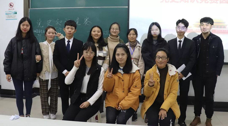 为铭记党史,继承党的光荣传统,发扬党的优良作风,进一步激发大学生爱国爱党的热忱,增强对党史、党情、党章的了解,11月29日,法学院党员之家在翔宇楼201教室举办主题为“不忘初心跟党走,砥砺奋进再扬帆”的党史知识竞赛。法学院兼职组织员李晨、党员之家骨干,以及2017、2018级学生参与此次活动。