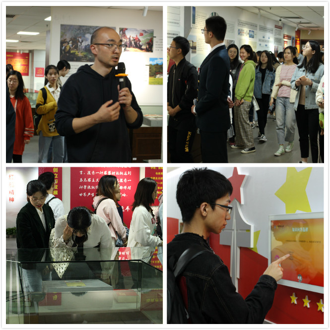 讲解老师首先详细阐述红船精神,而后讲述马克思、恩格斯、列宁等人的文学思想以及思想的发展过程,使得全体学生对于马克思主义的由来有更深的认知。接着介绍陈望道等人对于相关书籍的翻译,以及毛泽东主席如何在实际中运用马克思主义思想,配以展列的文学作品,使大家了解马克思主义如何中国化的过程。之后展示邓小平、江泽民、胡锦涛对马克思主义进行进一步阐释的相关资料,最后讲述习近平总书记的思想,习近平新时代中国特色社会主义思想使得马克思主义得到进一步中国化,以致贴近当代中国的社会发展建设的需求。