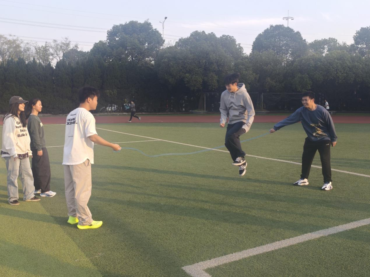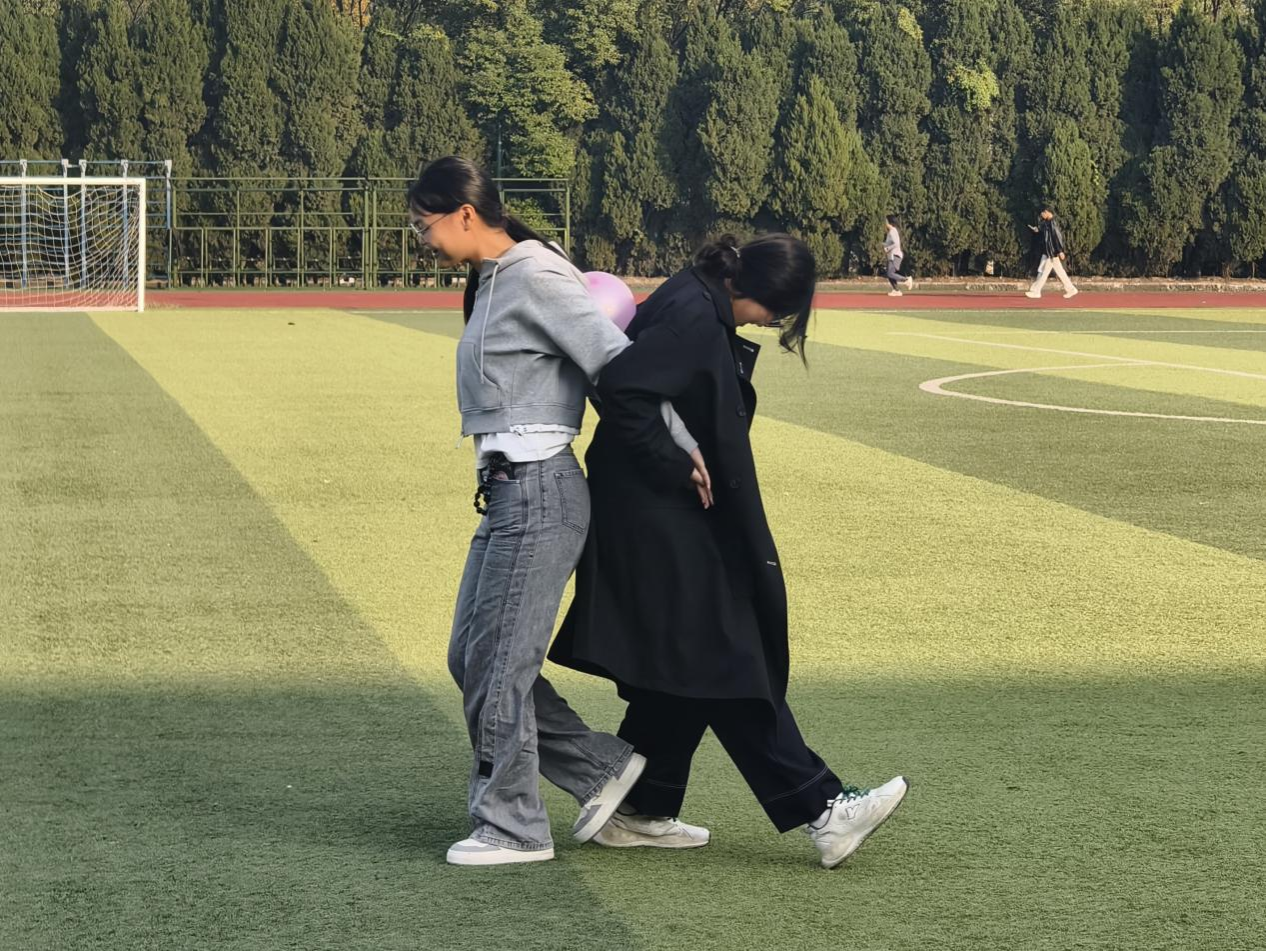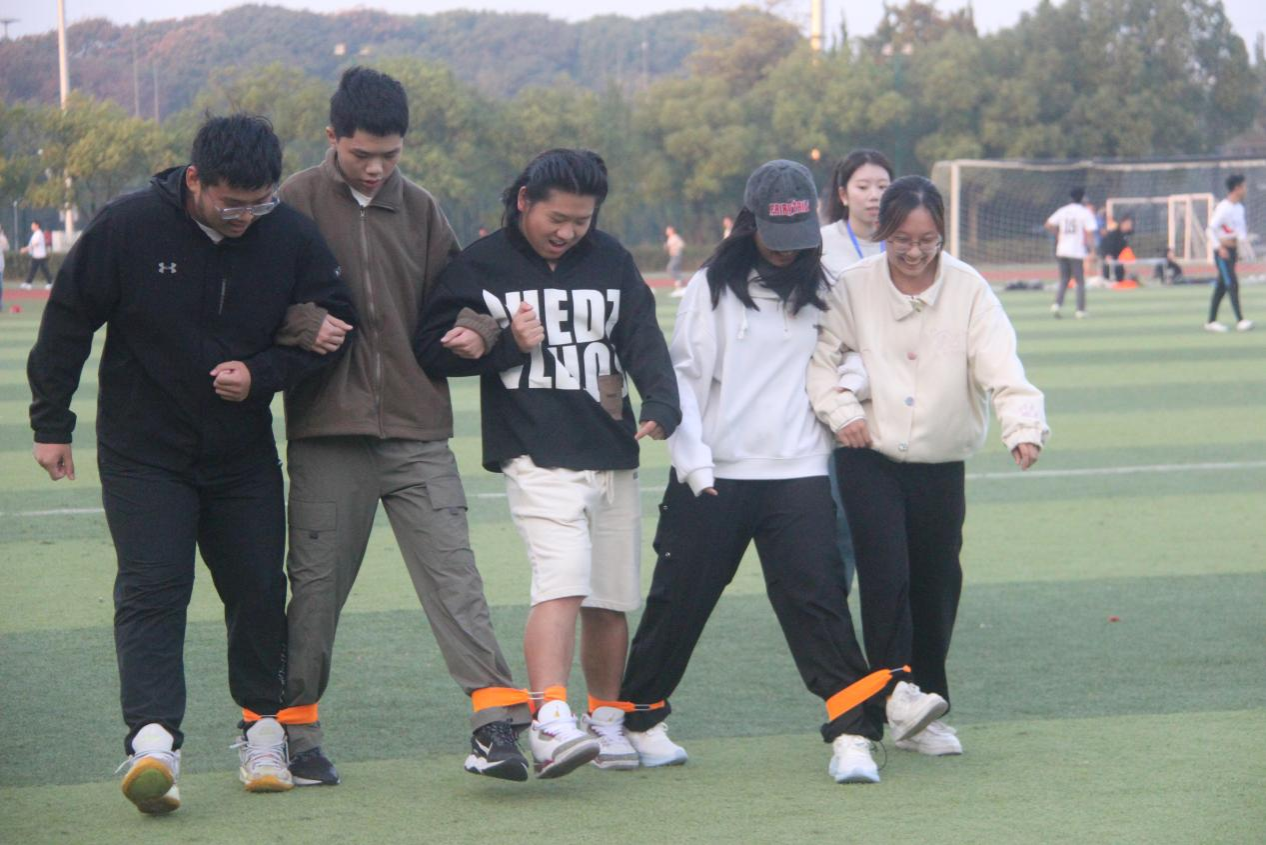 赛场之上,活力激荡。团体赛中,“背对背拥抱”双人夹气球考验着彼此的信任与默契;“绳彩飞扬”跳绳接力则展现出同学们无畏挑战、衔接流畅的果敢精神。小组赛中,“五人六足”项目更是步调一致、同心前行的生动写照,诠释了集体智慧与齐心之力。各项赛事不仅赛出了新生的昂扬斗志,更将团结、协作、共进的理念融入运动体验,有效增进了同学间的融合程度,筑牢了集体认同的根基。