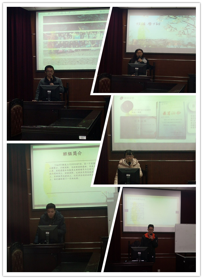 | 12月11日,法学院在格致南124模拟法庭举行2014-2015学年优良学风班和特优学风班评选。法学院2013、2014级学生班级参加评选,2015级学生班级代表进行观摩学习,班主任和辅导员代表刘义、豪树奇、姚昱帆、朱婷婷出席活动,并担任评委。 此次优良学风班和特优学风班评选按照抽签顺序,各参评班级以PPT和短片形式展示班级风采,班委上台限时五分钟介绍班级容貌、班级成绩、班级活动、班风寝风、班级成果等方面。13法学2班以"以法求真,以律明德,勤学治法,二视群雄"为班训,共享资源,活动丰富,班委负责,互帮互助。13法学1班坚持‘"五个一"工程建设'班级理念,即"1个成长目标,1个成长导师,1个学习同伴,1项体育爱好,1种健全人格",团体及个人所获奖项达30余项。13产权1班本着向上求实、德才兼备的原则,个性鲜明,充满活力,形成团结、奋进、热情、创新的良好风气。13法学3班是一个凝聚力强、不断进取、与时俱进的团体,积极参加校院两级组织的各项比赛和活动,创建良好的学风班风。14法学类3班同学满怀斗志,思想素质过硬,学习成绩优异,课外活动多彩,上课出勤率高,得到任课教师和辅导员一致好评。 最终,13法学1班被评为院级特优学风班,13产权1班被评为院级优良学风班,13法学2班、14法学类3班荣获院级优良学风班评选优秀奖,13法学3班荣获院级优良学风班评选展示奖。 评选结束后,刘义副院长针对此次优良学风班和特优学风班评选进行点评。刘义老师充分肯定各参评班级所获成绩,课内课外均出彩,校内校外政绩多。并希望同学们在校期间做到"有目标,有路径,有方法,有成效",注重课程学习和应用,在思考和提问中学习,法学路上与朋辈同行,未来将更美好更自信。 ![]() 评选现场 ![]() 班委介绍 ![]() 班级合照 |