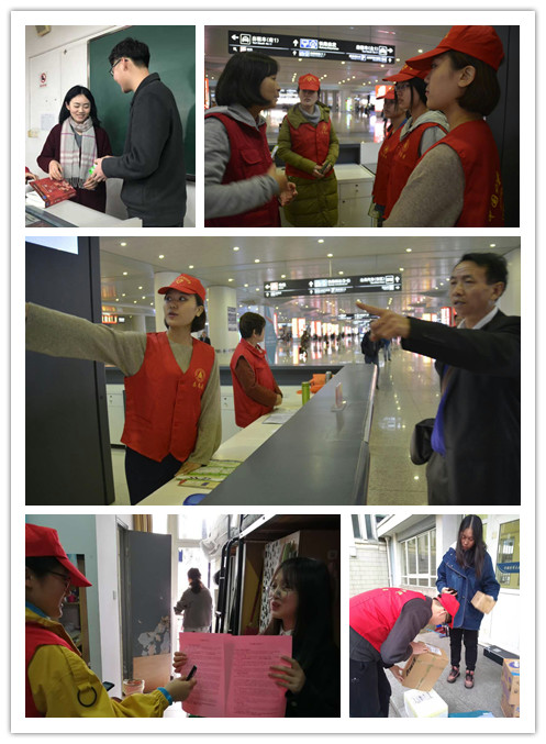 火车东站客流量极大,问路咨询的各地旅客非常多。在东站的微笑亭服务站里也留下我院志愿者的身影。每个周末,同学们早早来到杭州火车东站的微笑亭,经过短暂的统一培训,根据负责老师的安排,同学们开始一天的志愿服务。他们耐心细致的答复,体贴温馨的问候,给来往杭州的旅客们留下深刻的印象。
