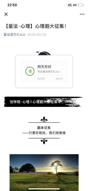 3月至4月,法学院为积极筹备校第十届校园心理情景剧比赛,向法学院全体学生发出心理情景剧剧本征集令。此次活动以校赛主题“春风计量,微笑有你”为主题,旨在通过话剧展示出当代大学生活的真实模样。