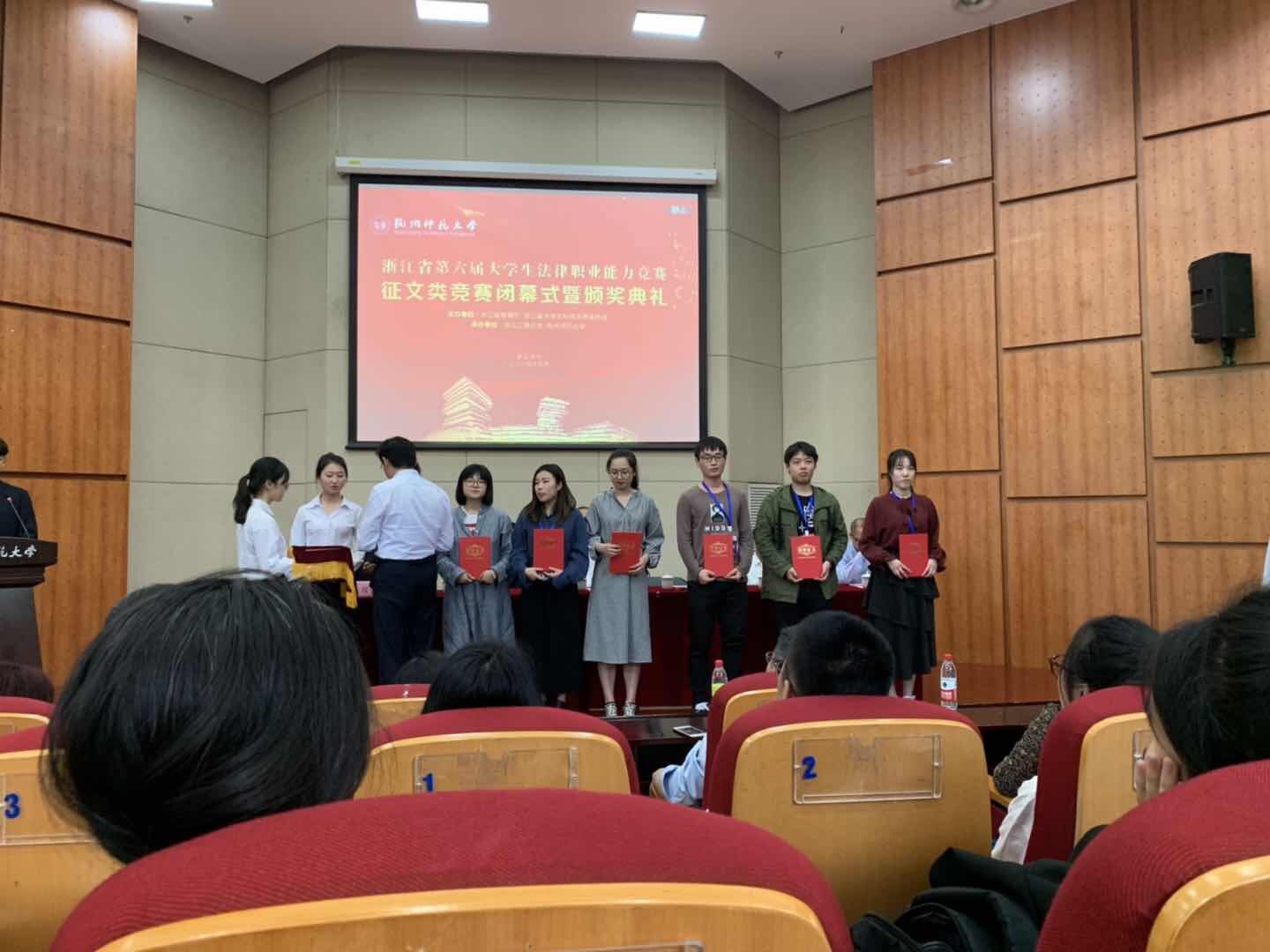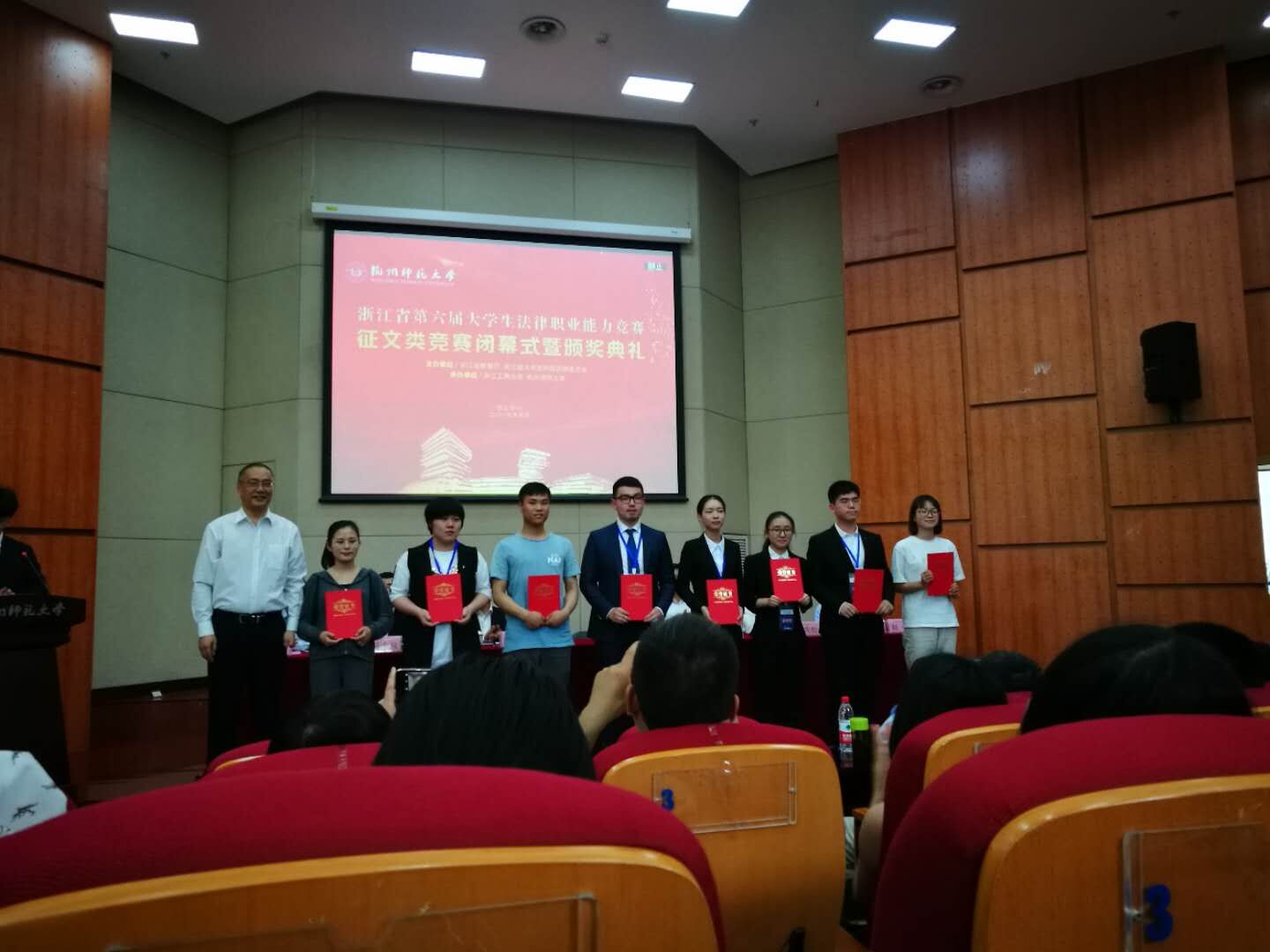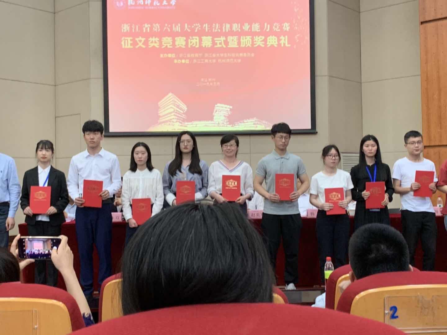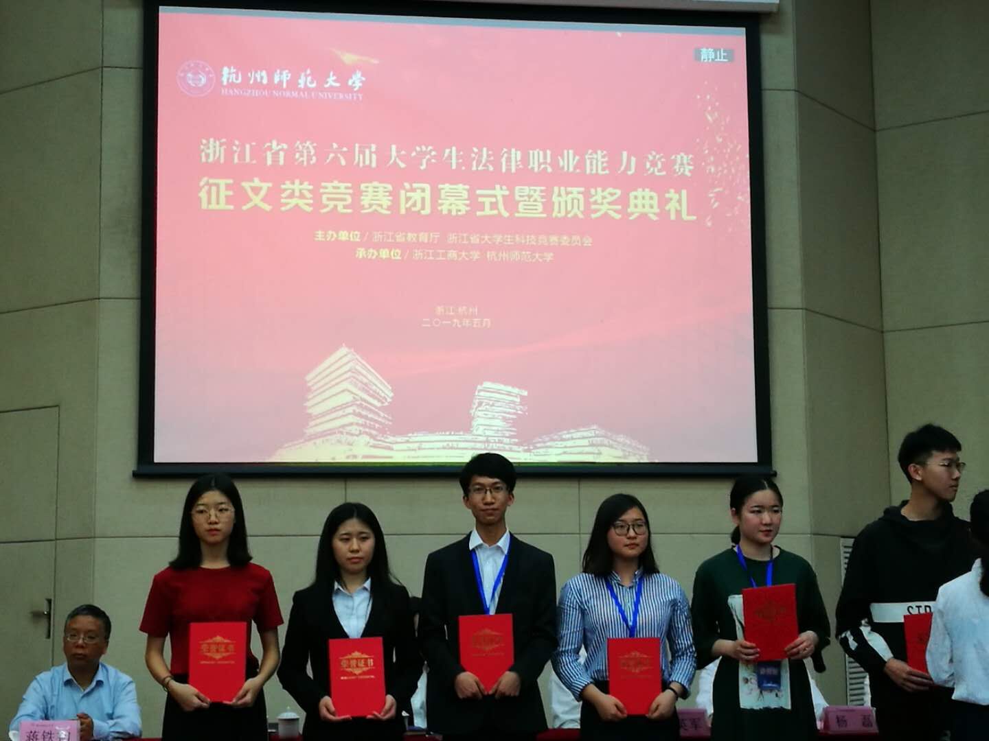 5月10日-11日,浙江省第六届大学生法律职业能力竞赛征文类竞赛决赛在杭州师范大学举行。经过两天紧张的答辩,我校参加决赛答辩的学生共获得两项一等奖、三项二等奖、五项三等奖的好成绩。