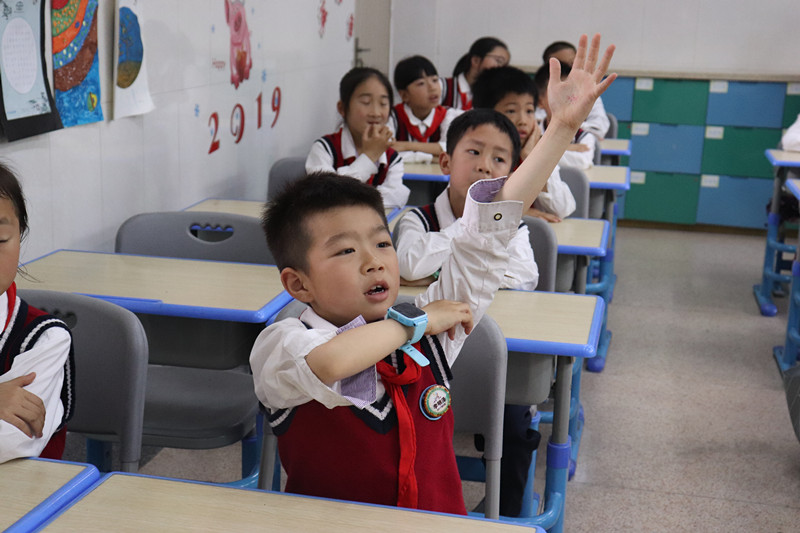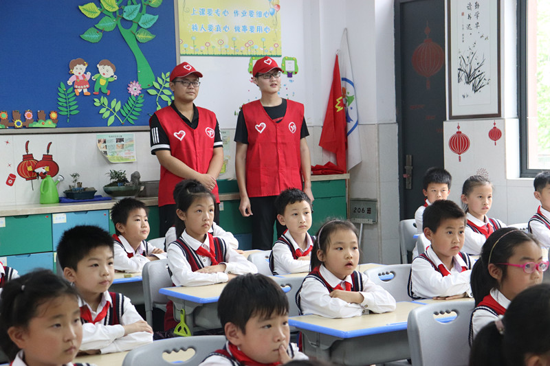 讲解过程中志愿者们也提出各种小问题,同学们都积极踊跃地举手回答。他们稚嫩的脸上充满认真,回答得也十分精彩。