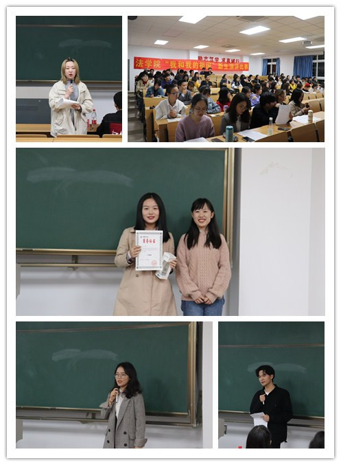为庆祝中华人民共和国成立70周年,深化爱国主义教育,帮助学生树立正确的人生观、价值观、世界观,展现新生风采,10月29日,法学院在翔宇楼403教室举行“我和我的祖国”新生演讲比赛。法学院17法学1班王星月、17法学2班宋浩、18法学类1班朱珂莹、18法学类4班宾兴扬作为评委出席此次比赛,2019级全体同学作为观众参加比赛。