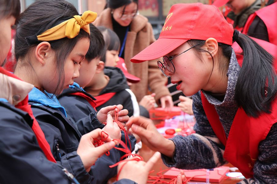 此次活动选取最贴近小朋友生活的三个民间技艺:中国结、写春联和皮影戏,让小朋友在传统习俗的熏陶下,迎接一个“中国风”的元旦。小朋友们在志愿者大哥哥大姐姐的帮助下,动手实践,共同制作中国结、写春联和皮影戏,欢声笑语充满整个校园。