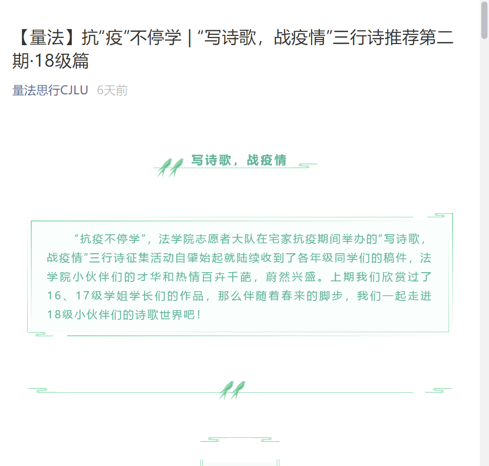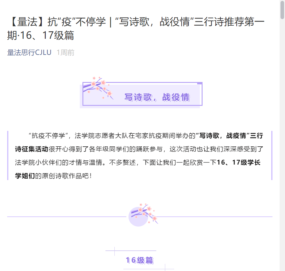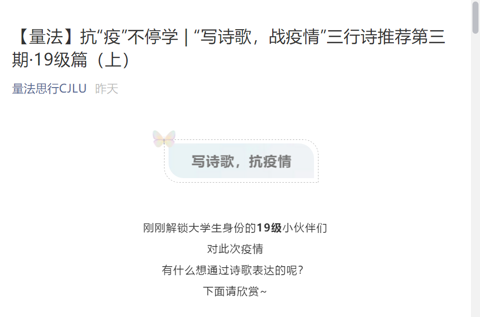 以文抒情 以诗传意 法学院举行“写诗歌 战疫情”三行诗征集活动