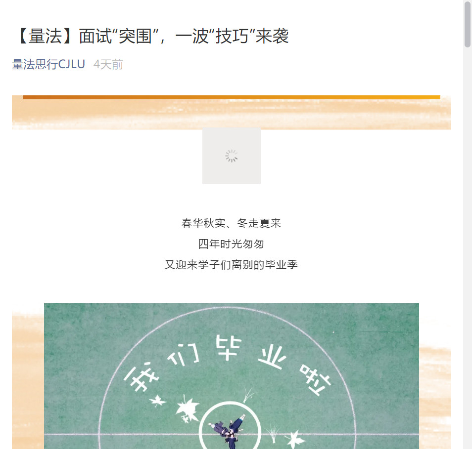 面对疫情,针对今年招聘会更多的采取线上“云”招聘的形式情况,法学院学生会权益部准备专题推送,针对面试、简历,给毕业生支招。通过推送,毕业生们了解到简历制作中的技巧,能够更好推销自己,抓住用人单位眼球。针对今年更多的是线上视频的形式进行面试招聘,推送中着重介绍面试的形象问题,以及问题的应答技巧,并提醒同学们要注意网络质量,让面试顺利进行。