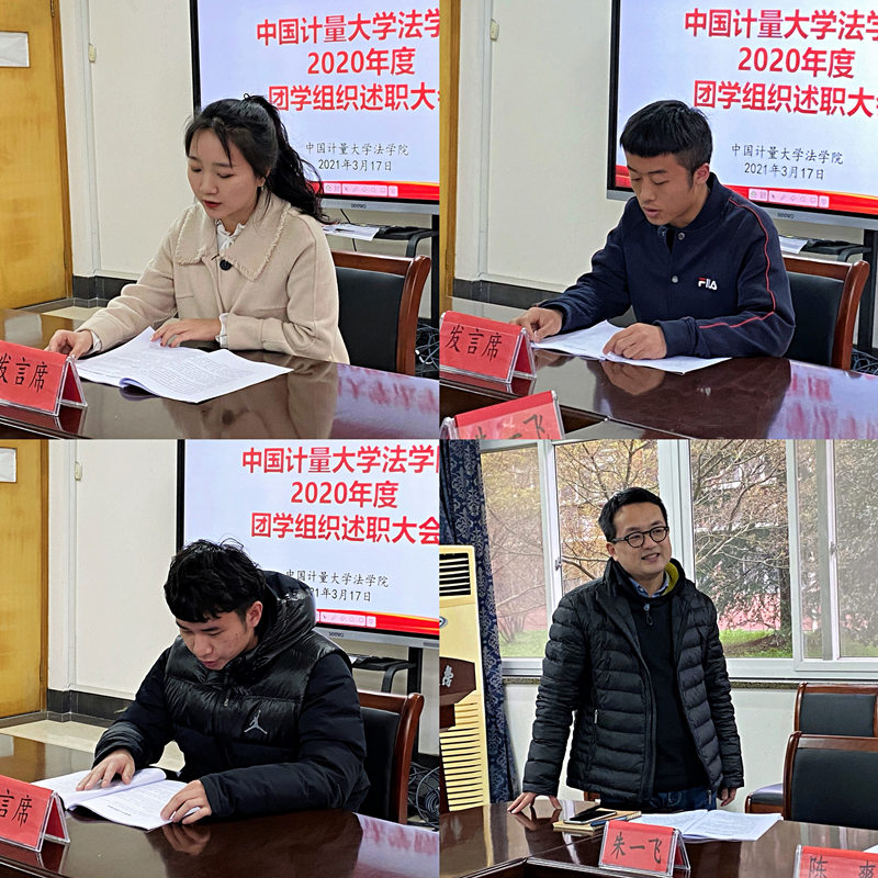 为贯彻落实《中国计量大学法学院学生会深化改革实施方案》要求,推行学生骨干述职评议机制,3月17日下午,法学院团委在格致南楼101会议室召开2020年度团学组织述职大会。法学院副院长兼党委副书记朱一飞、团委书记豪树奇、团委副书记陈爽、张婷婷以及主席团成员、各部门负责人参加会议。