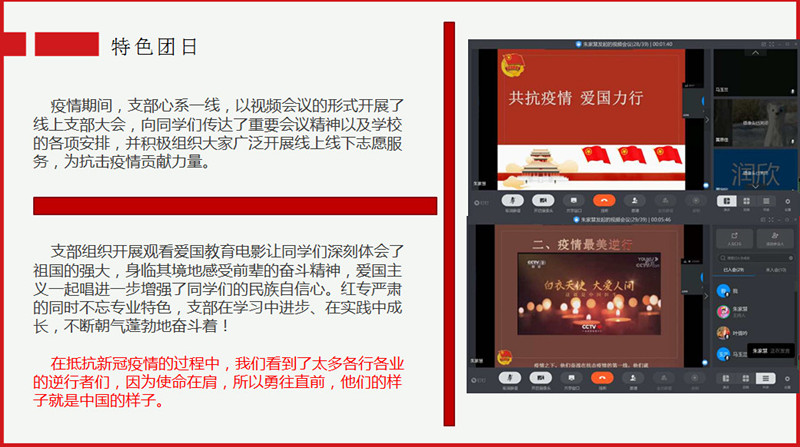 最终,19产权1班团支部被评为法学院2020年度“五四”活力团支部。“生命支流”中流淌的不仅是川流不息的汪洋,更是支部全体成员心中熊熊燃烧的热血。站在历史的交汇点上,即使每一青年团员只有滴水般渺小微弱的力量,也要怀着有百川赴海的心志,为祖国的美好明天而奋斗。