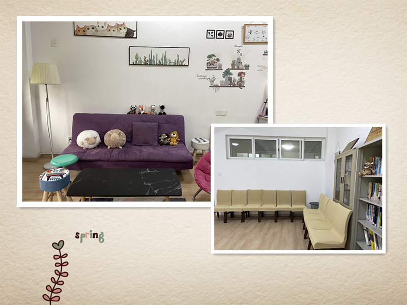 圆球羊公仔布娃娃,做工精湛,抗菌防螨,安全有爱,特别能贴近女生少女心,不仅可吸引眼球,降低来访者的紧张程度,更可体现出心理健康辅导站布置上的温馨和体贴感。森林动物一家公仔摆件在设计上富有自然气息,分布在沙发背、书柜里,让心理健康辅导站更漂亮的同时,给来访者满满的惬意,让感觉到舒适和温暖,分分钟能被治愈心。以满足来访者的需求出发,用罩垫子靠背一体的米黄色椅子套包装座椅,尽可能让来访者感觉舒服,并能将座椅自由移动,方便来访者寻找与咨询师沟通时的视线角度。