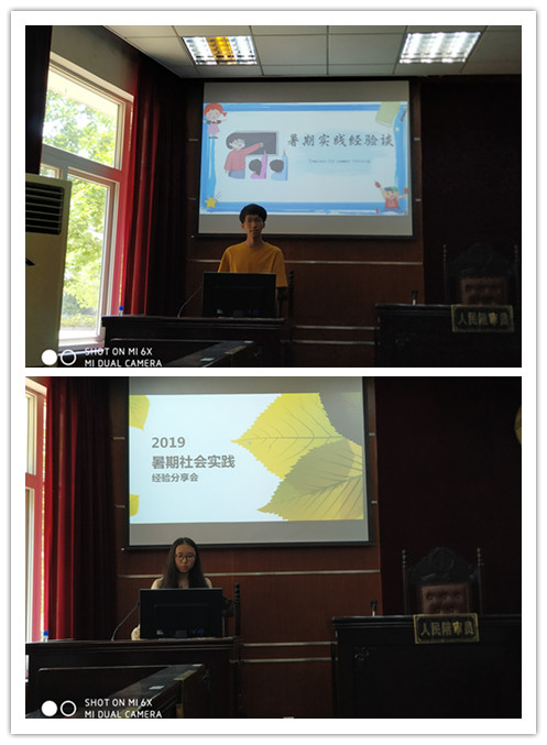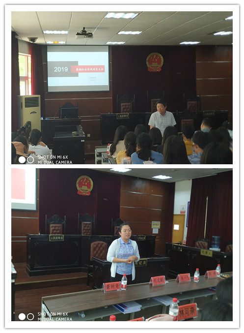 5月23日中午,法学院在格致南楼124模拟法庭举行2019年暑期社会实践动员大会,法学院2018级全体学生参加。法学院党委书记刘文献,副院长朱一飞,学工主管兼团委书记豪树奇,团委副书记陈爽以及2018年法学院暑期社会实践优秀团队负责人梅晗、宋浩、林可亲出席此次动员大会。