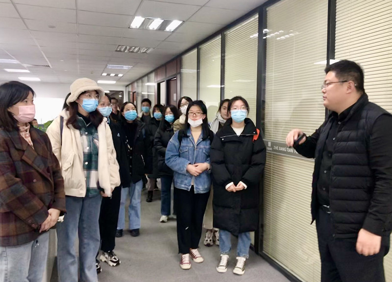解本平带领师生们参观律所,详细介绍律所日常工作内容和参与案件代理的全过程,鼓励学生们将课本知识转化为实践,给同学们上一堂生动的职场体验课。