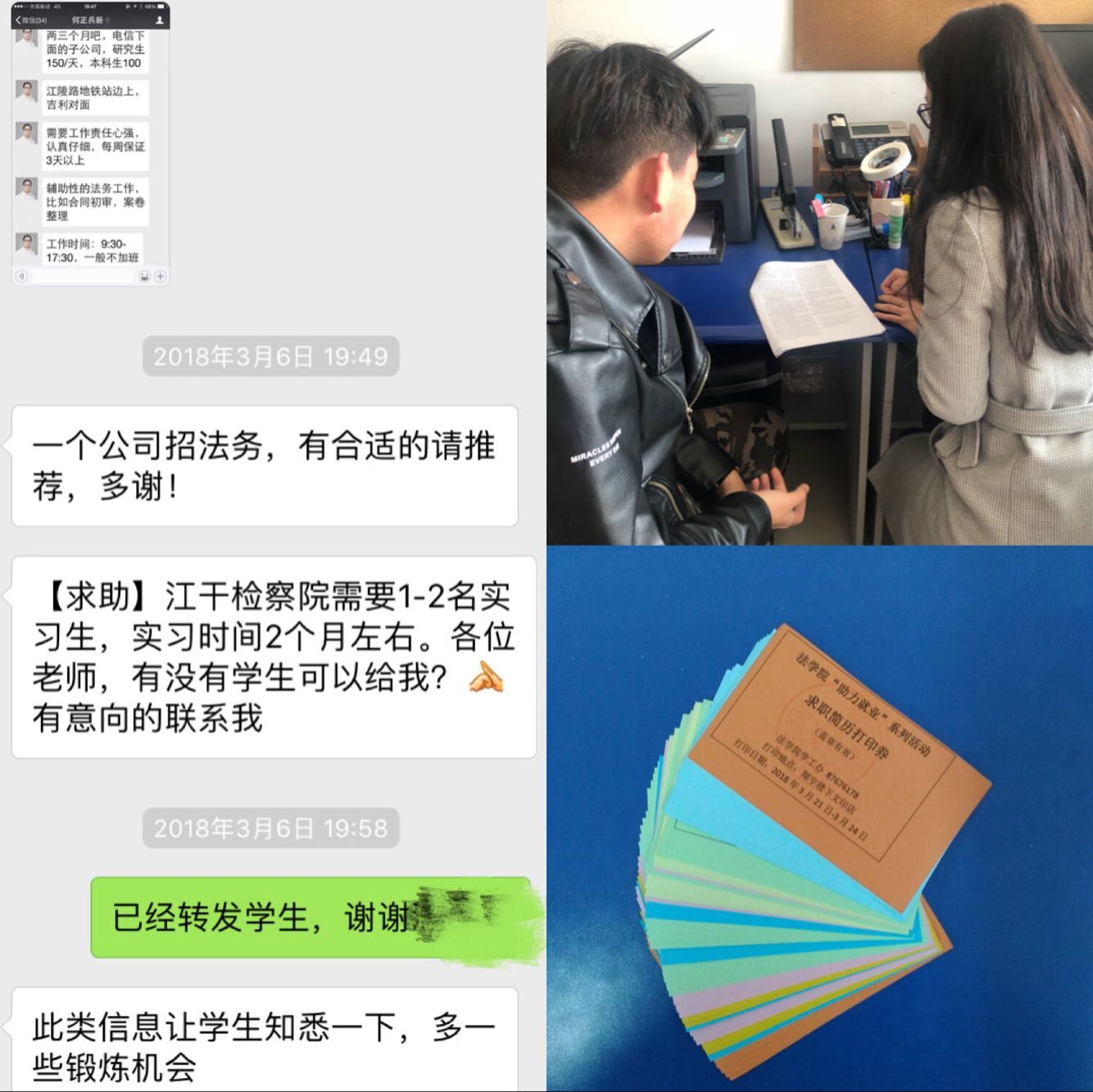 为帮助毕业生更好地了解就业形势,补足自己的就业短板,帮助非毕业班学生做出更好的职业规划,并响应学校就业创业帮扶的号召,法学院开展“助力就业”系列活动。 在此次系列活动中,学院通过线上线下互动,全院师生共同努力,为同学们提供就业帮助。通过“简历问诊”、“就业政策答疑解惑”、“研究生复试交流会”等线下活动,同学们渐渐地发现自己在简历设计中缺少的亮点,在就业创业过程中能够获得的帮助,在研究生复试、公务员面试过程中应当注意的陷阱。同学们纷纷表示,收益颇多。为让同学们更好地准备即将到来的春季招聘大军,学院组织免费简历打印活动,同学们通过学院发放的求职简历打印券打印简历。学院老师也积极为同学们提供专业对口的招聘信息,帮助学生就业。 此次“助力就业”系列活动是法学院就业帮扶活动之一。今后法学院将继续为促进学生就业提供便利途径,让同学们找到真正适合自己的岗位,回报母校、回报社会。![]() |