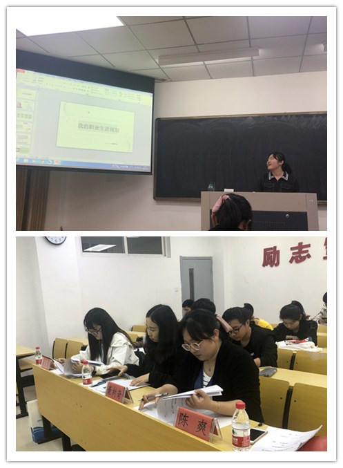 经过前期文本筛选,共有四组参赛选手进入现场答辩环节。此次答辩分为PPT演示和现场答辩两个环节。参赛者有条不紊地进行PPT展示演讲,通过对自身性格、兴趣、特长以及所处环境的客观、全面分析,对自己的未来发展方向进行合理定位,以便积极应对就业形势变化。同学们对自己全面细致的分析以及职业的新颖给大家留下深刻印象,而现场评委精辟独到的点评更是将比赛推向高潮。