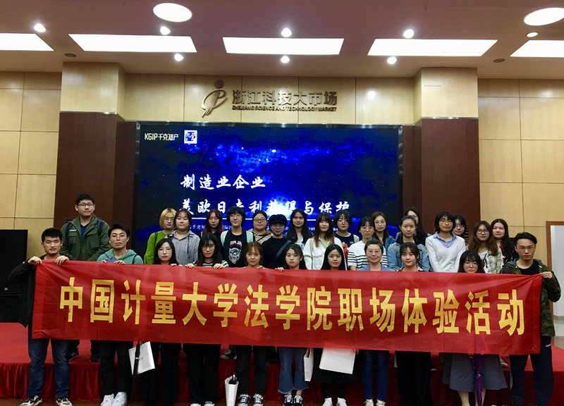 为帮助学生了解知识产权行业现状和相关企业用人需求,提前做好就业准备与职业规划,增强就业竞争力,应浙江千克知识产权代理有限公司邀请,10月14日上午,法学院组织开展职场体验活动,法学院2020届就业辅导员李晨带领30余名学生前往浙江科技大市场,参加“制造业企业美日欧专利获得与保护”(第二届千克国际知识产权保护沙龙)。