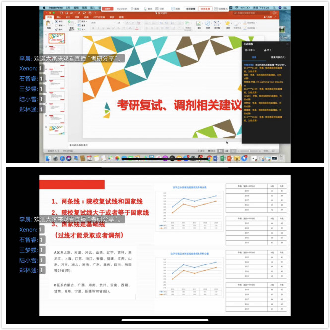 自考研初试成绩公布以来,辅导员、班主任和学院专业课老师积极关心考研同学,利用社交平台开展一对多、一对一指导,利用钉钉直播开展线上复试调剂指导课,联合计量律舟校友平台开展线上考研复试经验分享目前已开展多场活动指导学生备战复试。