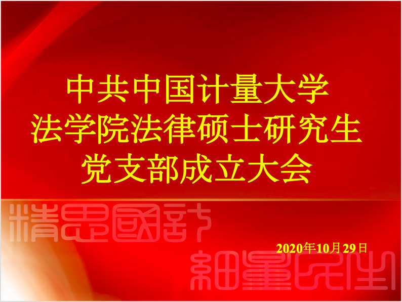 10月29日中午,中共中国计量大学法学院法律硕士研究生党支部成立大会在义乌研究生院博学楼101党员活动室召开。会议通过线上线下结合形式进行,法学院兼职组织员李晨和11名研究生党员参加成立大会。
