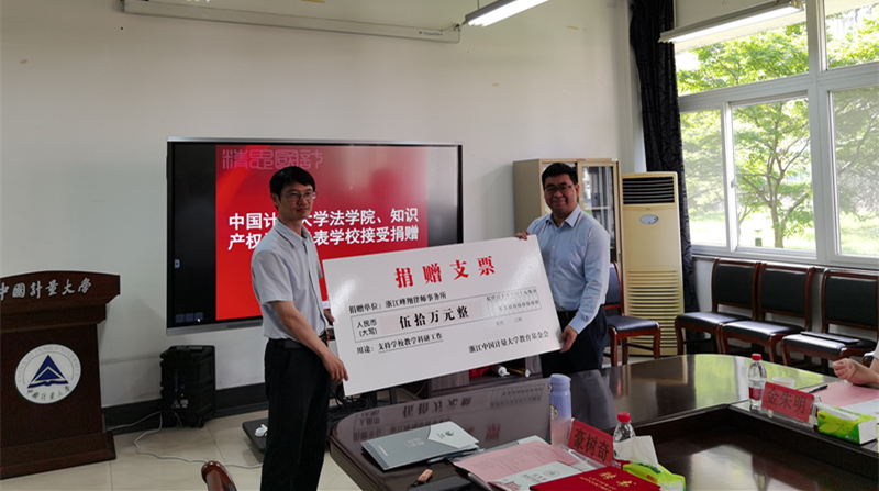 浙江峰翔律师事务所向我校基金会捐赠50万元,用于支持教学科研工作。陈永强代表学校接受捐赠支票。