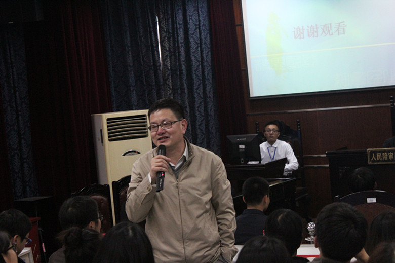 我校第六届廉政文化周系列活动之模拟法庭活动于11月18日下午在格致南楼124室隆重举行。校纪委书记王小华、副书记梁小昕,计财处处长张志群,审计处副处长张雅,计测学院党委委员包福兵,生命学院党委委员潘家荣,法学院党委书记周泛海、法律系教师李晓君等嘉宾出席了本次活动。法学院100余名学生也参与了庭审旁听。