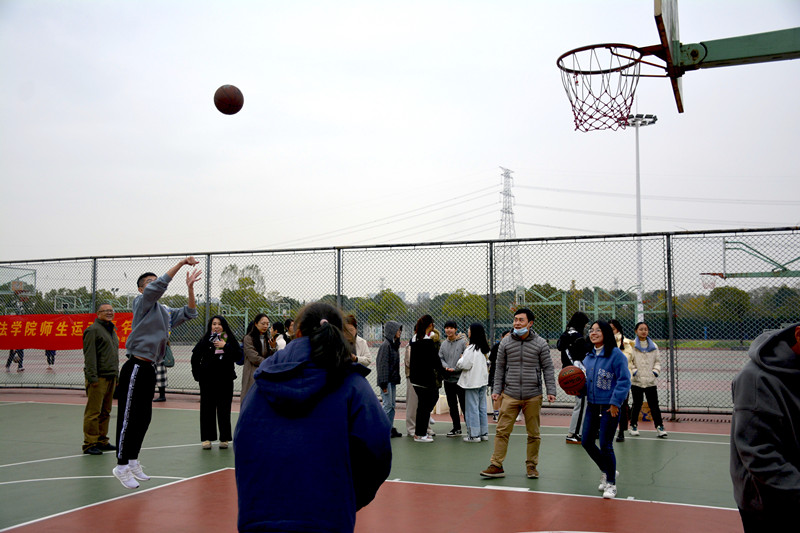 在师生联谊篮球赛上,由法学院李晓君、李晨两位老师和学生组成的师生联队,与2019、2020级本科生组成的学生联队开展激烈比拼。伴随着裁判员一声哨响,比赛拉开帷幕。师生联队进入状态较快,凭着默契的配合和漂亮的长传、拼抢、传球,加上精准的投篮,很快取得领先;但学生联队没有慌乱,迅速稳住阵脚,步步为营,展开反扑。下半场,争夺更加激烈,学生队生猛,教师队稳重,双方展现出强劲的实力,场面激烈。观战的教师、学生更是一个劲儿地加油助威。比赛双方你追我赶,互不相让。最终在全场如雷的呐喊助威声中,教师队与学生队以50:49的比分,在愉快中结束。