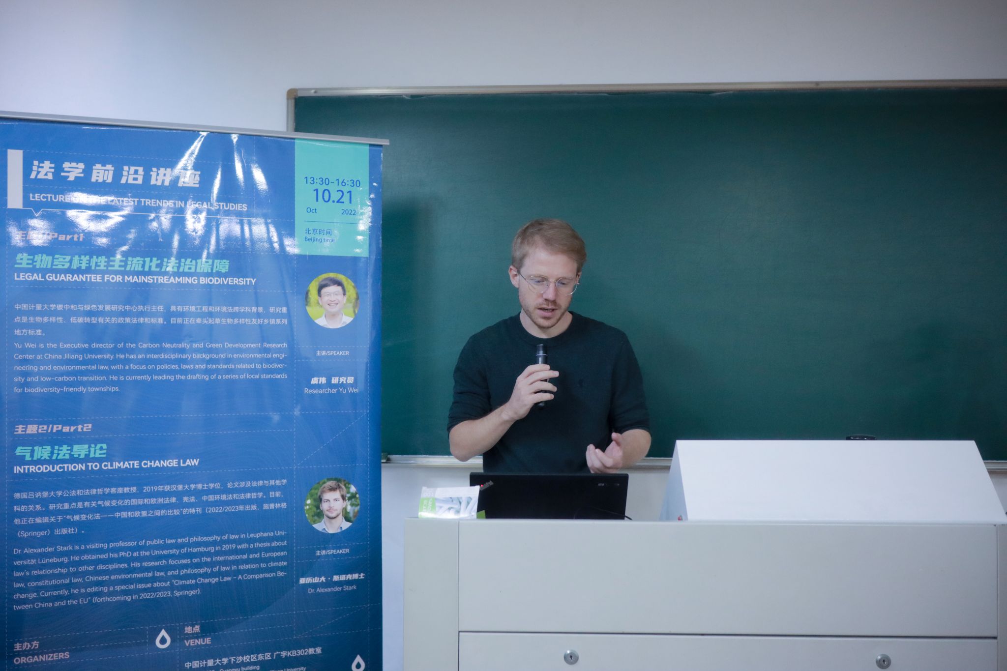 2022年10月21日,“生物多样性主流化法治保障与气候法导论”讲座在我校顺利举行。本次讲座由中国计量大学法学院、中国计量大学碳中和与绿色发展研究中心以及德国汉斯·塞德尔基金会浙江代表处联合主办。中国计量大学碳中和与绿色发展研究中心执行主任虞伟研究员、德国吕讷堡大学公法和法律哲学客座教授亚历山大·斯塔克博士、德国汉斯·塞德尔基金会浙江代表处首席代表Dominik Sprenger(施小东)等通过线上线下结合的方式出席讲座,法学院50余名硕士研究生参加讲座。